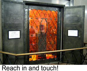 I’ve had personal experiences with this phenomenon. As a child, I vacationed a few times at my grandparents’ home in Montreal. It was located right down the block from a very famous shrine, St. Joseph’s Oratory, where a monk known as Brother André – since beatified, so well on his way to becoming a saint – once lived. He gained a reputation as a healer, and the shrine was – and still is, I’m sure – festooned with crutches, canes, artificial limbs, braces, and various prostheses that appeared to attest to his ability. I recall seeing penitents mounting the long stairway leading up the hill, on their knees, arriving there bloody and, of course, in agony. But the one article inside the building that really got my rapt attention was, and still is, Brother André’s heart. No, you read that correctly. They actually displayed the monk’s heart, preserved in rather cloudy formaldehyde, in a jar. Back in the 40s, which would be when I visited this shrine, the devout could actually stick a finger into the liquid and touch the heart! Conveniently, tissues were available so that the brave and faithful finger could be wiped off.