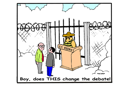 You see how mistaken we common folks were before Representative Harris straightened us out? I know of a whole bunch of people who erroneously believed – until her fine hand finessed the “hanging chads” fiasco that the State of Florida contributed to the next-to-last Presidential election – that our politicians were accepted or rejected solely by the voting procedure! Apparently it’s God who makes the choices!