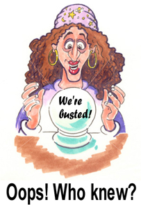 Subject: RUN FOR THE HILLS Also, a bit of numerological logic: At three minutes and four seconds after 2 AM on the 6th of May this year, the time and date will be 02:03:04 05/06/07. This will never happen again. So don′t drink too much on Cinco de Mayo, which falls on May 5th this year, or you might miss it. Therefore, I predict that all computers will shut down, causing a worldwide economic crisis, mass hysteria, and a complete moral breakdown of society, just like in the year 2000. Pay no attention to that man wearing the curtain as a turban… And, my friend Shintaro Fujiyama, in Japan, has brought an action against the Nippon Television Network Corporation and TV Asahi Corporation, for airing shows last year that revealed how magicians perform tricks involving coins. A group of forty-nine Japanese magicians are suing, seeking $16,000 in damages in a suit filed with the Tokyo District Court, the magicians claiming that the programs infringed on their common property. Said Fujiyama, those broadcasters "instantly deprived professional magicians of their assets," built up through the accumulation of ideas and long-term practice. Wisely, Fujiyama declined to talk in any further detail about the tricks that were exposed. I agree. That way lies madness…! |
