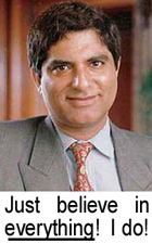 HIGH HUMORDeepak Chopra, Guru of the True and Uncritical Believer, provides our chortle of the week. In response to a question sent him by one of his naïfs, “Should I Listen to an Astrologer?” he replies in true woo-woo fashion. Here’s the exchange: Q: How does one let go of ideas that were implanted in our minds at such a young age? For example, when I was in the 7th grade, an astrologer told me that I would have a nervous breakdown at 35. All these years, I have been plagued by anxiety and now as I approach my 35th birthday, it’s getting worse. Yes, the thought crossed my mind that this might be someone just trying to elicit a particularly hilarious response from Chopra, but in any case it serves as a wonderful example of the blend of medieval thinking and authentic quackery that he turns out.