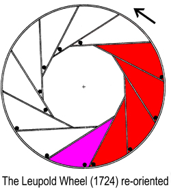 Going to the official website of Steorn, I saw a peculiar-looking wheel – shown in this illustration – which appeared to be the device itself, and I immediately scurried to the JREF library to leaf through a copy of "Perpetual Motion – The History of an Obsession," by Arthur Ord-Hume. Sure enough, on page 72, I found an illustration of the classical "perpetual motion" wheel that inventors for the past 400+ years have been trying to get working. This next illustration of the “Leupold Wheel” is slightly altered to agree more with reality, and not with the theoretical notions that were entertained by those who were sure it would work. The sections in red are those in which the contained ball is poised to change its position in a “quantum” fashion, and the pink area indicates where the contained ball is slowly on its way to taking its next position. Regardless, the entire wheel is in equilibrium, and not producing any energy, and thus no motion.