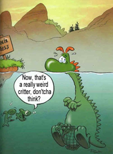 The principal income generator of that country, after peddling jars of haggis to tourists, seems to be peddling stuffed Nessie toys to tourists. As our coach first approached the famous Loch, our guide started in on a gentle discussion of why he does not believe in Nessie... the number of members of the species you’d need to stay viable, the conditions of the Lochs and the water that make sightings so iffy, the amount of research that has been done that produces no sightings, etc. And also the story that the most famous image was confessed in a will to have been a hoax the whole time. Jan, it’s always refreshing to hear a rational approach to a popular subject, so yes, I’m smiling…! |