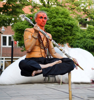 Wouter Bijdendijk, a Dutch magician working under the name Ramana has been levitating in Times Square and in front of the White House, as you’ll see. Though the TV commentators have managed – of course – to introduce woo-woo into his quite legitimate performance, inventing phrases such as, “leaning ever so slightly on a bamboo cane,” to lend a fact not shown or claimed in the stunt, the illusionist hovered several feet above the pavement, resting on a stick that he held with his left hand. "This is an art," he said, “requiring certain knowledge that you have to have. He also said that it involved “training” and “science,” inarguably true. “I hope I make people wonder," he added. A press release said that Ramana’s repertoire also includes "flying" up to 10 meters above the ground, “mind reading” and “other forms of Indian street trickery.” How refreshing. And if he were to bend a spoon, I’m sure he’d also dub it as a trick – unlike some spoonbenders we know… See this chap at work at tinyurl.com/2w5p2f |
